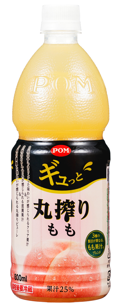 写真をクリックすると拡大します。 POMギュっと丸搾りもも(800mlペット/6本) 商品コード: 132650 ¥2,390円(税込み) 数量 - + カートに入れる いつもと違った柑橘の魅力に出会える果実飲料。 商品詳細 製法が異なる3種の白桃果汁(クリア果汁、混濁果汁、ピューレ)と、果実由来の食物繊維を適量でブレンドしています。果汁のみずみずしさに加えてジュワっと溢れ出る果汁の濃厚感をお楽しみいただけます。 【 商品内容 】800mlペット / 6本入り 一括表示 名称 25%もも果汁入り飲料 原材料名 もも(スペイン)、糖類(果糖ぶどう糖液糖、砂糖)、食物繊維/酸味料、香料、ビタミンⅭ 栄養成分表示(100mlあたり)※当社推定値 エネルギー 48kcal たんぱく質 0g 脂質 0g 炭水化物 11.9g 食塩相当量 0.06g こちらの商品を見た方へおすすめ商品 POMギュっと丸搾りみかん(800mlペット/6本) 2,390円(税込み) POM黒烏龍茶(500mlペット/24本) 4,140円(税込み) POMポンスパークリング(410mlペット/24本) 5,180円(税込み) POM日本のお茶(500mlペット/24本) 4,140円(税込み) POM日本の麦茶(600mlペット/24本) 4,140円(税込み)