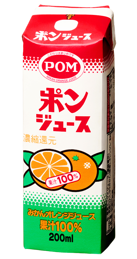 写真をクリックすると拡大します。 POMポンジュース(200ml紙パック/12本) 商品コード: 121190 ¥2,850円(税込み) 数量 - + カートに入れる 飲みきりサイズの200ml紙パックを使用したポンジュース。 商品詳細 酸味と甘味のバランスがよい温州みかん果汁と、爽やかな香りのオレンジ果汁を最適な割合でブレンドした、味わい豊かなジュースです。「おいしさ」にこだわり、甘みとコクが引き立つよう、まろやかに仕上げました。 【 商品内容 】200ml紙パック /12本入り 一括表示 名称 果実ミックスジュース(濃縮還元) 原材料名 果実(うんしゅうみかん(国産)、オレンジ)/香料 栄養成分表示(100mlあたり)※当社推定値 エネルギー 45kcal たんぱく質 0.6g 脂質 0.1g 炭水化物 10.5g 食塩相当量 0g カリウム 160mg こちらの商品を見た方へおすすめ商品 POMポンジュース(800mlペット/6本) 4,210円(税込み) POMポンジューススクエア(1000ml紙パック/6本) 5,180円(税込み) POMポンジュース (280mlペット/24本) 5,960円(税込み) POMグレープジュース (800mlペット/6本) 2,650円(税込み) POMアップルジュース(800mlペット/6本) 2,650円(税込み) POMアップルジューススクエア(1000ml紙パック/6本) 2,720円(税込み)
